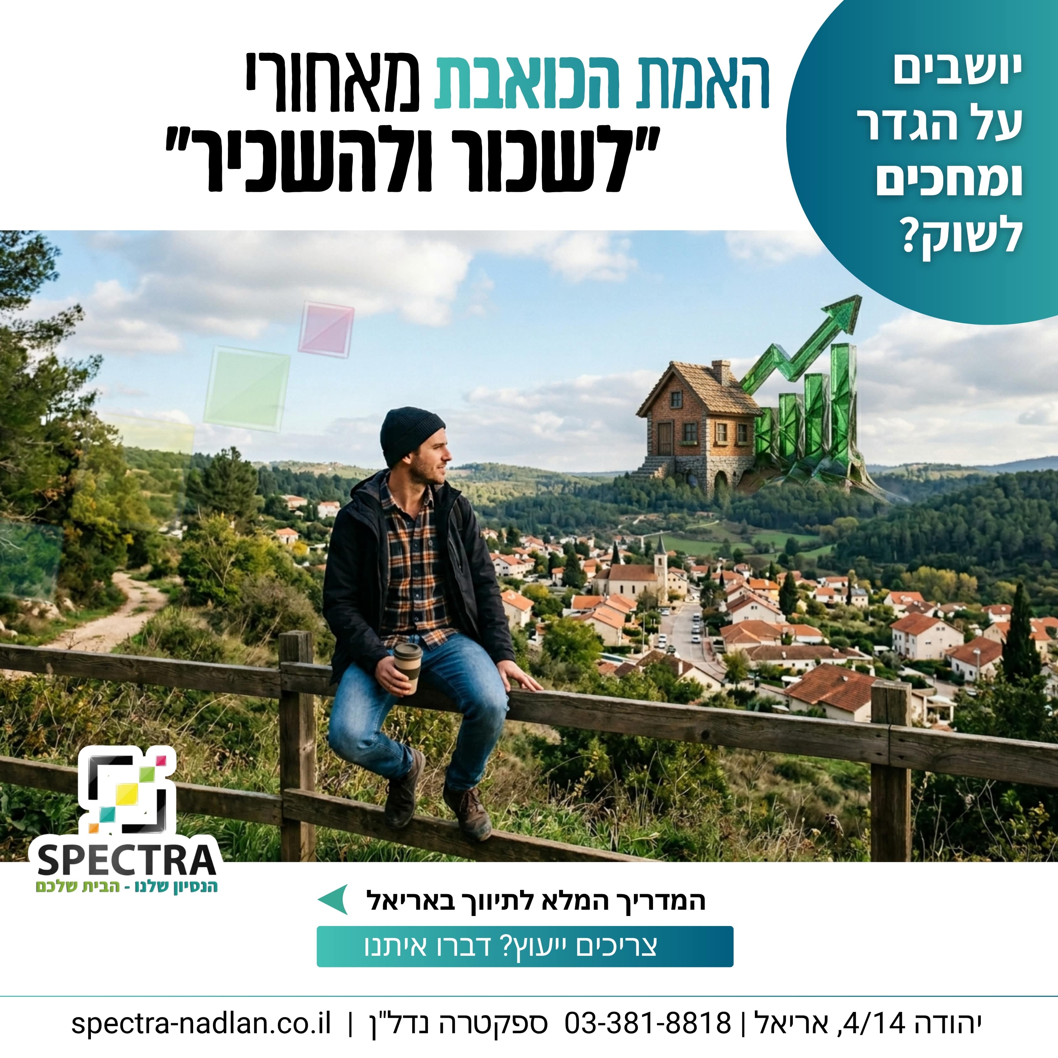 מתלבטים אם למכור דירה באריאל (והשומרון) או להשכיר אותה? הכתבה שתשנה לכם את התפיסה. גלו למה משפרי דיור מפסידים מאות אלפי שקלים ומחיר נפשי יקר בהמתנה, ואיך מתווך באריאל שמנתח נתונים יציל לכם את הכסף.